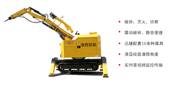 集破拆、滅火、偵查等多功能為一體,多應(yīng)用場(chǎng)景精細(xì)化作業(yè)的消防應(yīng)急破拆新型裝備。該設(shè)備前端可以快捷配置液壓錘、挖斗、抓取器、液壓鉆等10多種不同作業(yè)屬具,用于地震、樓宇坍塌等事故的應(yīng)急救援、事故救援、工業(yè)建筑、化工建筑的破拆,災(zāi)后搶建等。救援人員可進(jìn)行多方位、遠(yuǎn)距離控制破碎、剪切、拆除等作業(yè)。